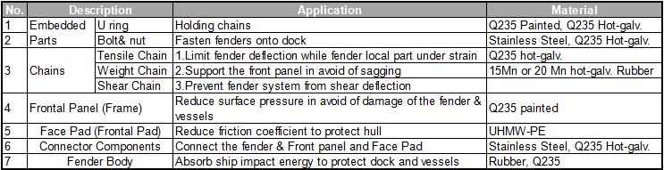 3.The super high desity polyethylene pads ate adhered to the frontal frame, which can reduce the friction factor between hull and fender to below 0.2, and can reduce the shear (horizontal force) exerted on marine fenders when vessel berth, which can prolong the service life of super cone rubber fender.